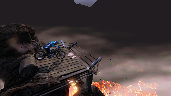 Stepping up in difficulty a bit is Extinct volcano, which doesn’t really seem all that extinct, a nice mix of physics setup technical obstacles followed by a short flowing section make for a nice overall track that features a well realized theme and quite a bit of animation work.