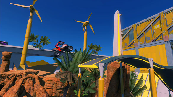 The TKO Panda was a new addition to Fusion and while it’s not everyone’s cup of tea there are some Trials players who really enjoy this 4-wheeled bad ***. For those players I selected TeriXeri’s Traffic Flow. This track features a lot of high speed and big jumps through a very well-crafted city environment. The colors are vibrant and inviting with a lot of yellow and a few well done animations add some real life to the track. The flow that’s alluded to in the name is fairly elusive so make sure you run this one a few times to find the fastest line.