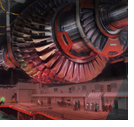They passed a few other engineers who were strapped to the sides, punching calculations into the wall-screens. Then they reached the end of the tube, where a thick bullseye looked outwards. Maya moved closer. A giant workshop was floating a tube-length away from their position. It did not look like the intricate biological station she had been working in, more like a large car engine – heavy beams and machinery, only small working areas and lots of shielding. It took her a second to register that she could look directly inside the workshop.