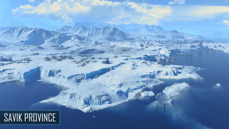 The Savik Province is a large continental plate located in the middle of the arctic. Slumbering geysers can be harnessed for their heat or for energy generation.