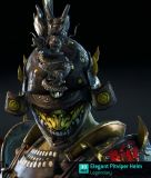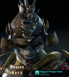 Hi, the male version is missing the color like the female one has (yellow nose of that oni face part). Also the color is fixed / doesn't change with the characters color set (male + female). Hope to be fixed soon (the "soon" without trademark plz ). PS: Still waiting for Orochi, Kensei, etc. buffs!