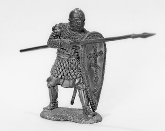 He's basically a knight with a big pavise shield and a spear (longer than the valkyrie's one).
