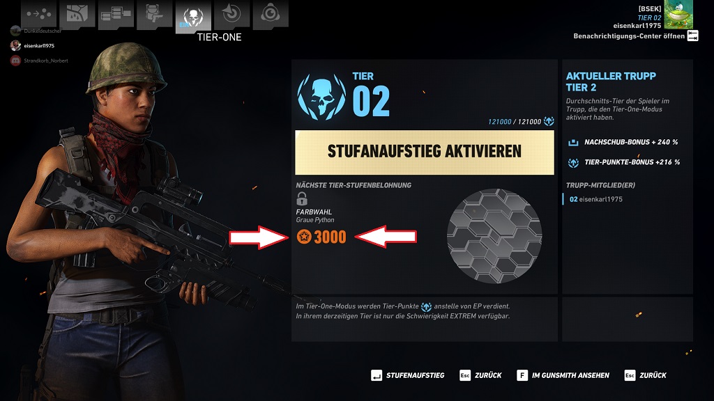 eisenkarl1975 is right. In normal Tier Mode when you are Tier Lvl2 it shows you in upcomming rewards, Skin grey pyton and 3000xp prestige. I reached Tier1 yesterday and was awaiting 3000 xp. I got the 300 xp and was dissapointed. Unfortunately I made no screen shot before as I was not expecting any problems. But you should easily be able to recreate that. If you are wondering wich upcomming rewards view I mean I will post a screenshot of my current screen. Of course now it shows that I have reached Tier Lvl 1. Please chek and fix this to spare this expirience to the players who will reach Tier lvl1 in the future. https://paste.pics/6d416a4ef9c1c81c4297584e0a4e1c0e