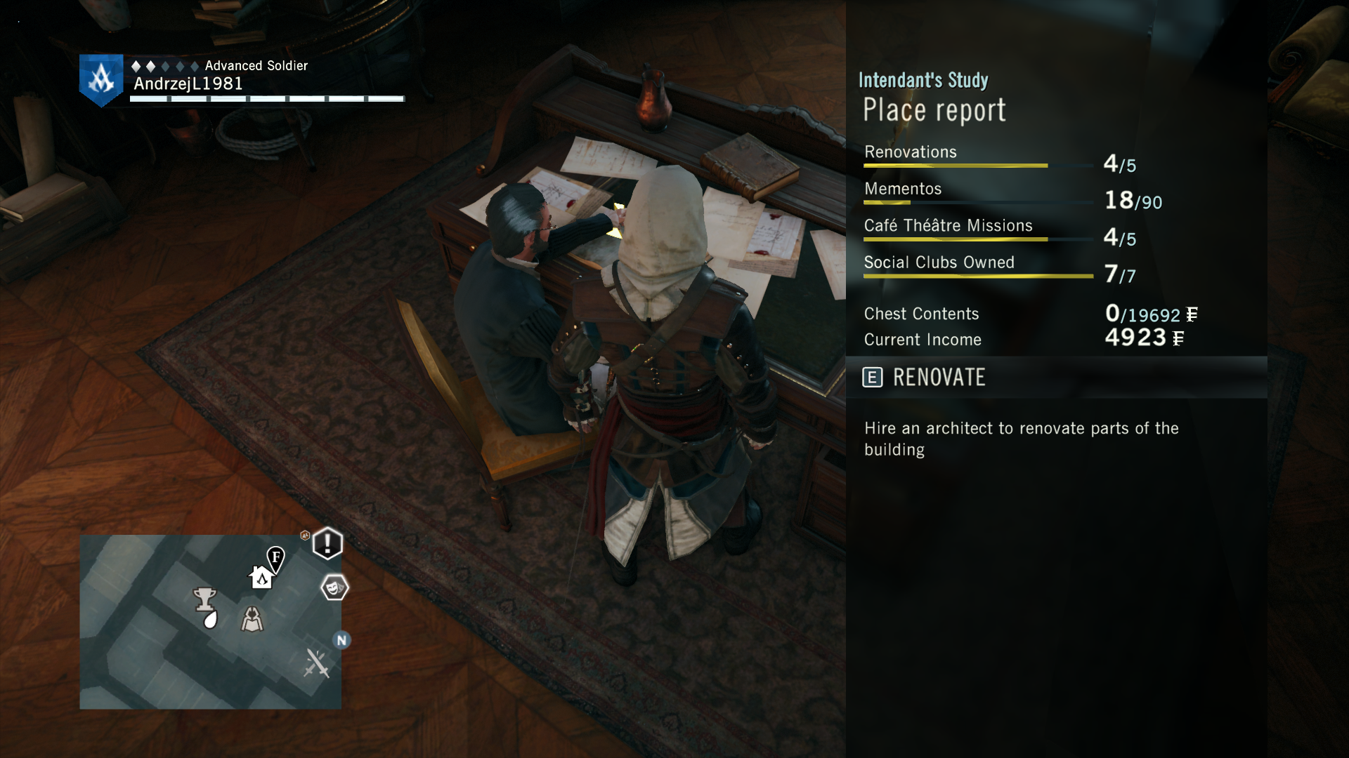 Then in the sequence 3 I finally found Cafe Theatre and the building upgrades. Since I gathered some money during walkabout I've upgraded almost all the sections except for the last one. Then I found the "income chest" and I've realized something is very wrong. My max income is stuck at 37F and my max capacity is stuck at 148F...