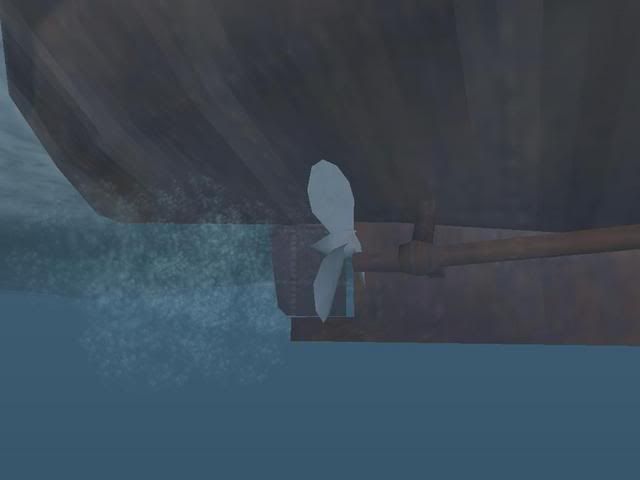 I watched this DD today, and something was not quite right. Its right screw seemed to wobble on the axis, as if it was attached not exactly centered on the axis... I zoomed in closer, and here is what I found. Must be one of the prototypes of magentic bearings the Allies used.