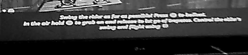 Looks like it says:swing the rider as far as possible press y to bailout in the air and hold (Y?) to grab on and (?release to ___ go on________. control the riders swing and flight______.)