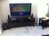 At my desk, next to my computer. Sony tube w/ RCA connection.