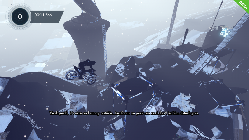 First, I want to say thank you for releasing this beta. Trials Fusion is my most anticipated game this year, and I'm very excited to get early access. That being said, I'm having a problem that makes it difficult to play. The game runs well, I can use all the features and finish races and the menus look fine, but as you can see in the photos there is a something wrong with the graphics. I've tried lowering all the settings, changing the resolution, and restarting my computer, but it didn't help. Here are my specs: