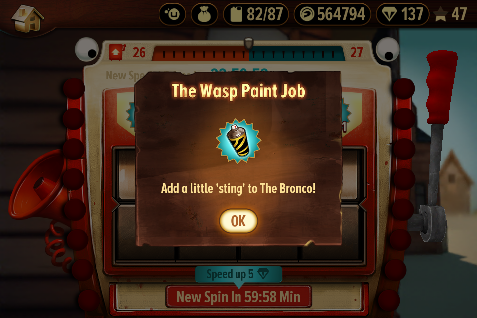Thanks for the share xitooner. My slot machine offer me the Wasp paint job again today, and like you I spend gems to get other paint jobs thinking it´ll fix the bug...