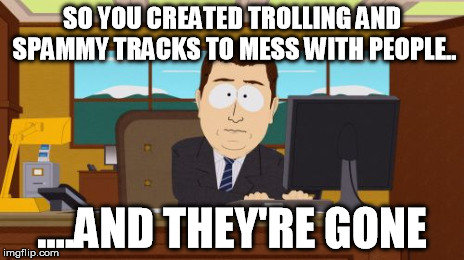 Heh, it takes longer to make new accounts than it does to remove all tracks and ban a user from Track Central...